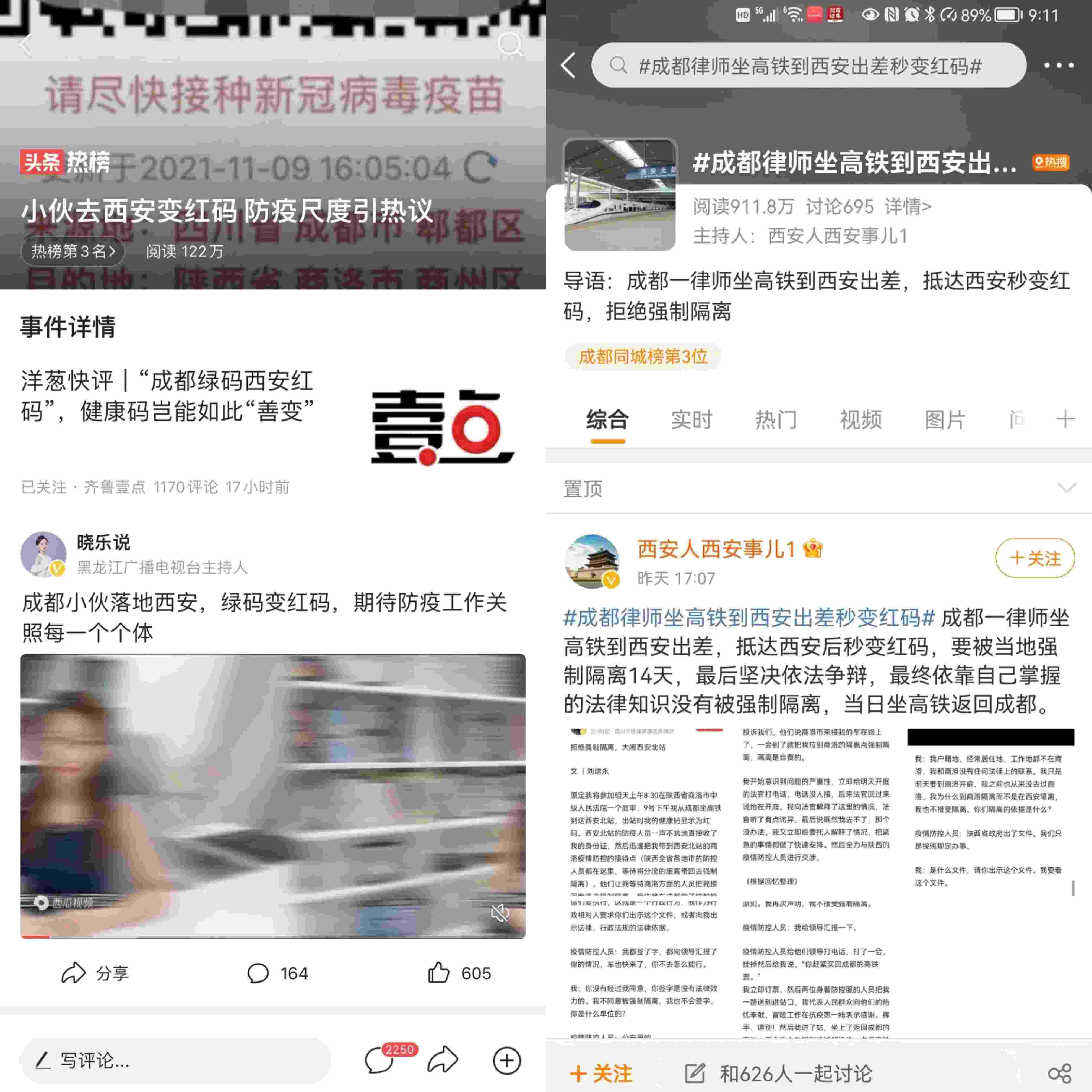 如图:“西安北站拒绝强制隔离事件”被海内外媒体广泛报道,网络上的阅读量超过一亿。 |